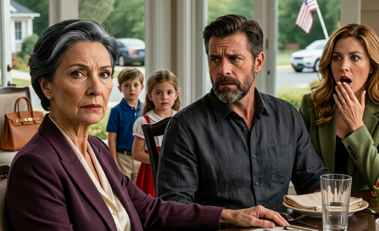 Elle se tient debout près de la longue table à manger, un seau à glace en argent suspendu à une main manucurée, les perles à son cou intactes, son rouge à lèvres impeccable, son expression figée dans cette cruauté polie des banlieues que les femmes riches prennent pour de l’esprit. En face d’elle, Brendan rit lui aussi, son bras enroulé autour de la taille de Jessica comme si l’humiliation n’était qu’un amuse-bouche de plus. Jessica porte ses doigts élégants à sa bouche et laisse échapper un petit soupir forcé qui sonne comme des applaudissements.