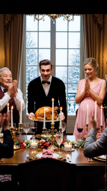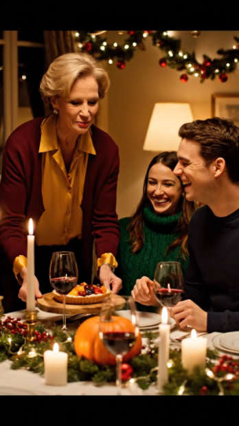 Des lumières festives vacillaient à la fenêtre.