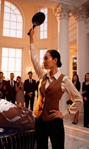 第二次嘗試時,艾蜜莉又拿來了一個茶壺,這個茶壺帶有金色裝飾,她的表情也略顯不耐煩。