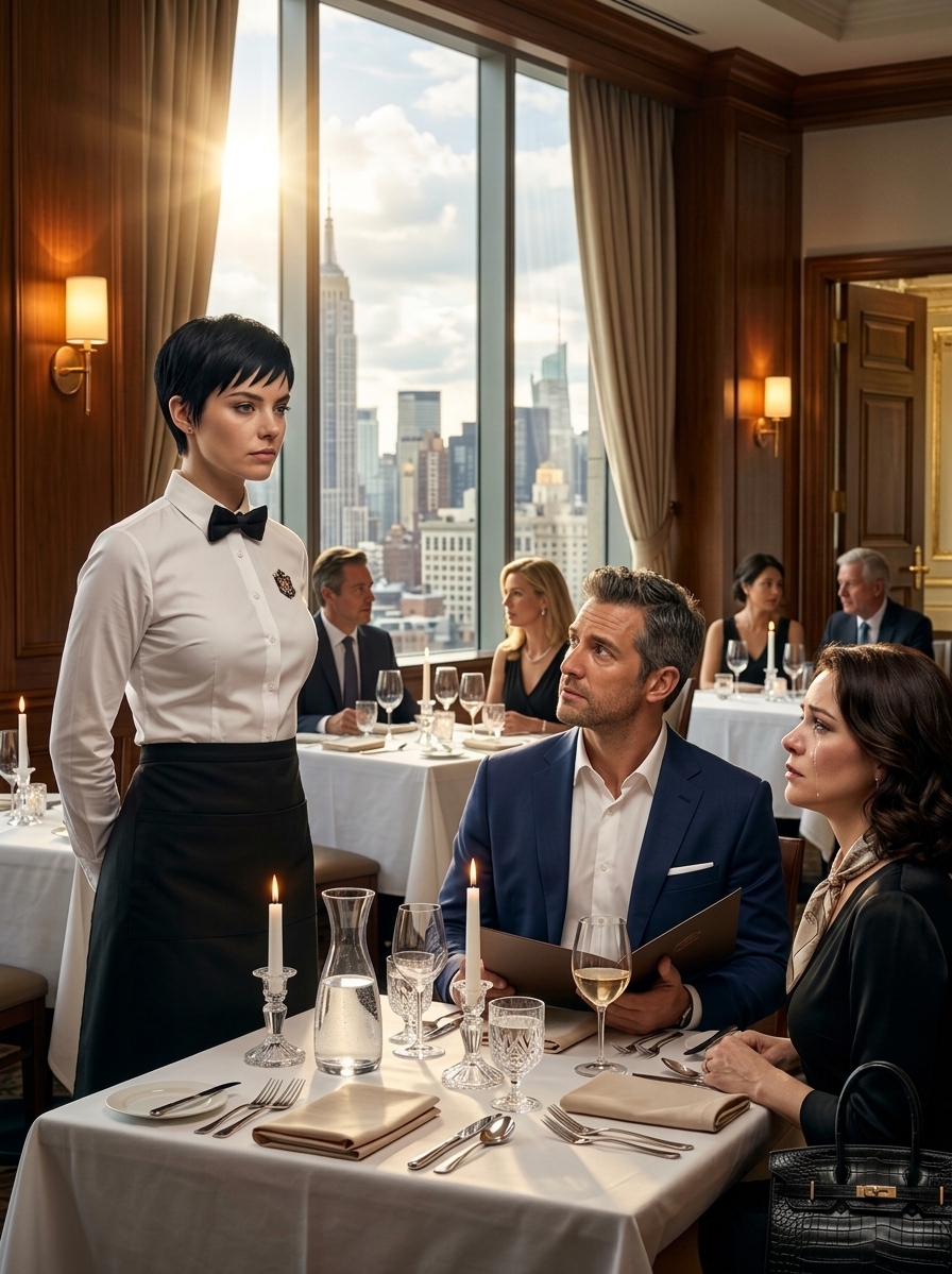 « Ils m’ont virée à ma propre table, » dis-je calmement alors qu’elle souriait et chuchotait, « Tu es superflue. » Des heures plus tard, elle a crié : « Mets-toi à genoux et nettoie ça ! » alors que du vin rouge coulait sur mon uniforme — et j’ai finalement levé les yeux et dit : « Non. » La pièce se figea alors que j’ajoutais, « Tu ne possèdes pas cet endroit… Je le veux. » Ils pensaient m’avoir anéanti, mais ils sont tombés directement dans mon piège—et ce n’était que le début…